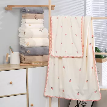 Soft Coral Fleece Towel Set with Cute Embroidered Designs – Super Absorbent & Quick-Dry