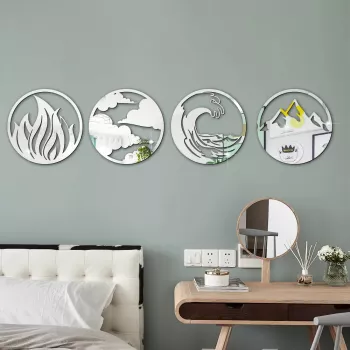 4pcs 3D Acrylic Four Elements Round Mirror Wall Stickers – Wind, Fire, Water, Soil