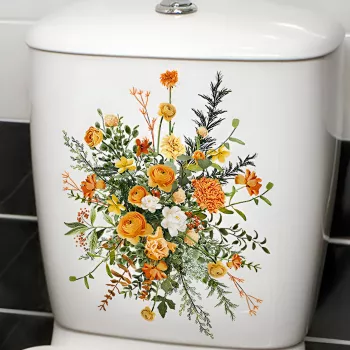 Green Plant Leaves Bathroom Wall Sticker – Self-Adhesive WC Mural Décor