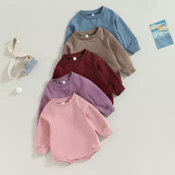 Infant Baby Unisex Solid Crew Neck Long Sleeve Bodysuit Jumpsuit 0-24M