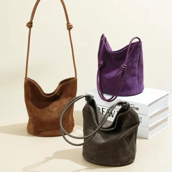 Genuine Leather Suede Messenger Bag – Stylish Bucket Bag for Women