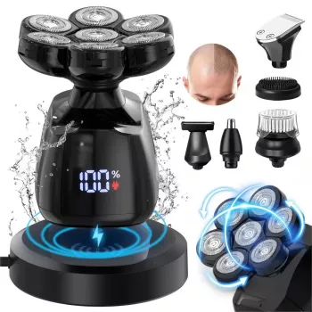 6-in-1 Electric Head Shaver for Bald Men with 7D Floating Blades & Grooming Kit